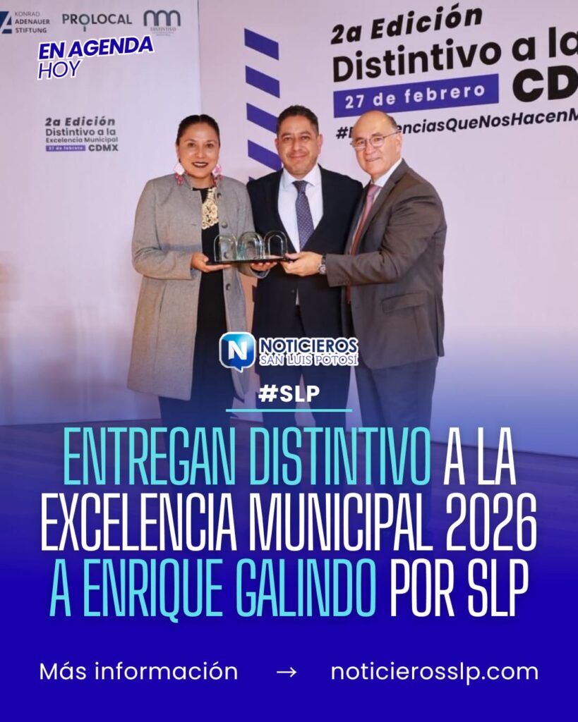 El municipio de San Luis Potosí, a través de su alcalde Enrique Galindo Ceballos, recibió el Distintivo a la Excelencia Municipal 2026 durante la XVI Sesión Plenaria de la Asociación de Ciudades Capitales de México (ACCM). El reconocimiento fue otorgado por el proyecto del Observatorio Turístico de la capital potosina.