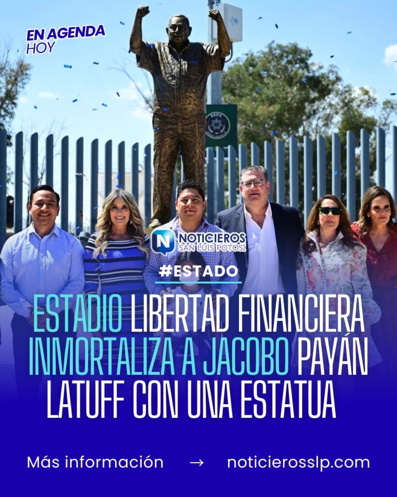 Autoridades estatales, municipales y representantes del fútbol profesional develaron una estatua en honor al empresario Jacobo Payán Latuff en el Estadio Libertad Financiera de San Luis Potosí. El acto reconoció su papel en el impulso y consolidación del balompié profesional en la entidad.