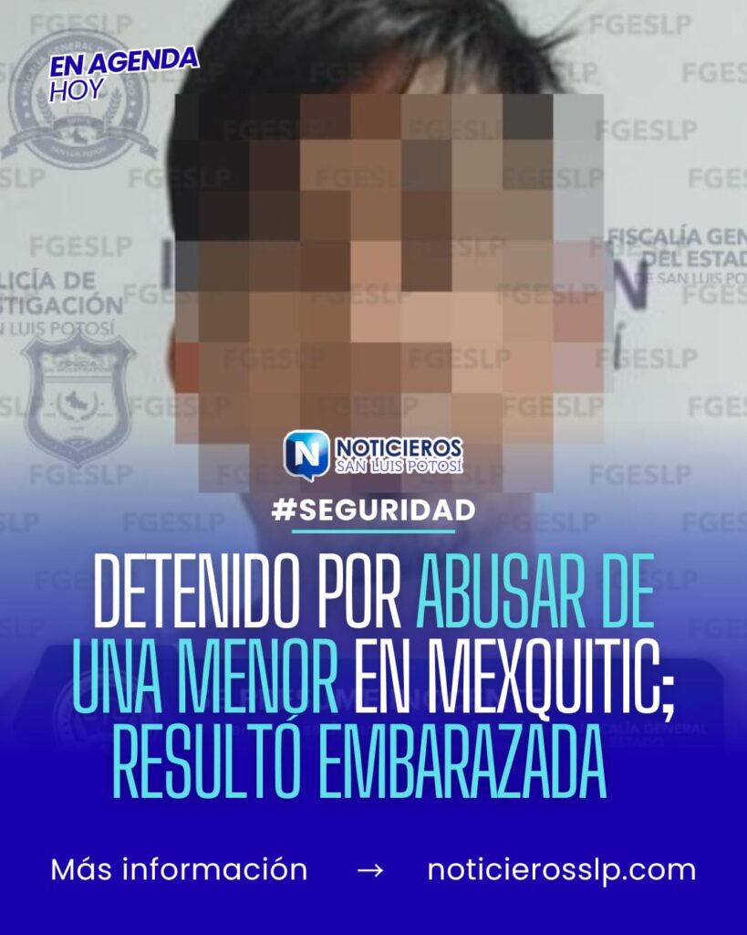 La Fiscalía General del Estado de San Luis Potosí (FGESLP) informó sobre la detención de un hombre identificado como Juan Carlos “N” en el municipio de Mexquitic de Carmona. La aprehensión se realizó mediante una orden judicial, por su probable responsabilidad en los delitos de abuso sexual calificado, violación agravada y aborto.