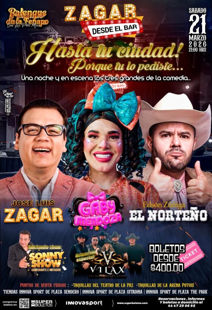 El Patronato de la Feria Nacional Potosina (Fenapo) ha programado una función de comedia para el sábado 21 de marzo a las 21:00 horas en el Palenque del recinto ferial. El evento, anunciado como parte de las iniciativas para fortalecer la oferta de entretenimiento familiar en San Luis Potosí, presentará a los comediantes José Luis Zagar, Gaby Mendoza y Edson Zúñiga ‘El Norteño’.