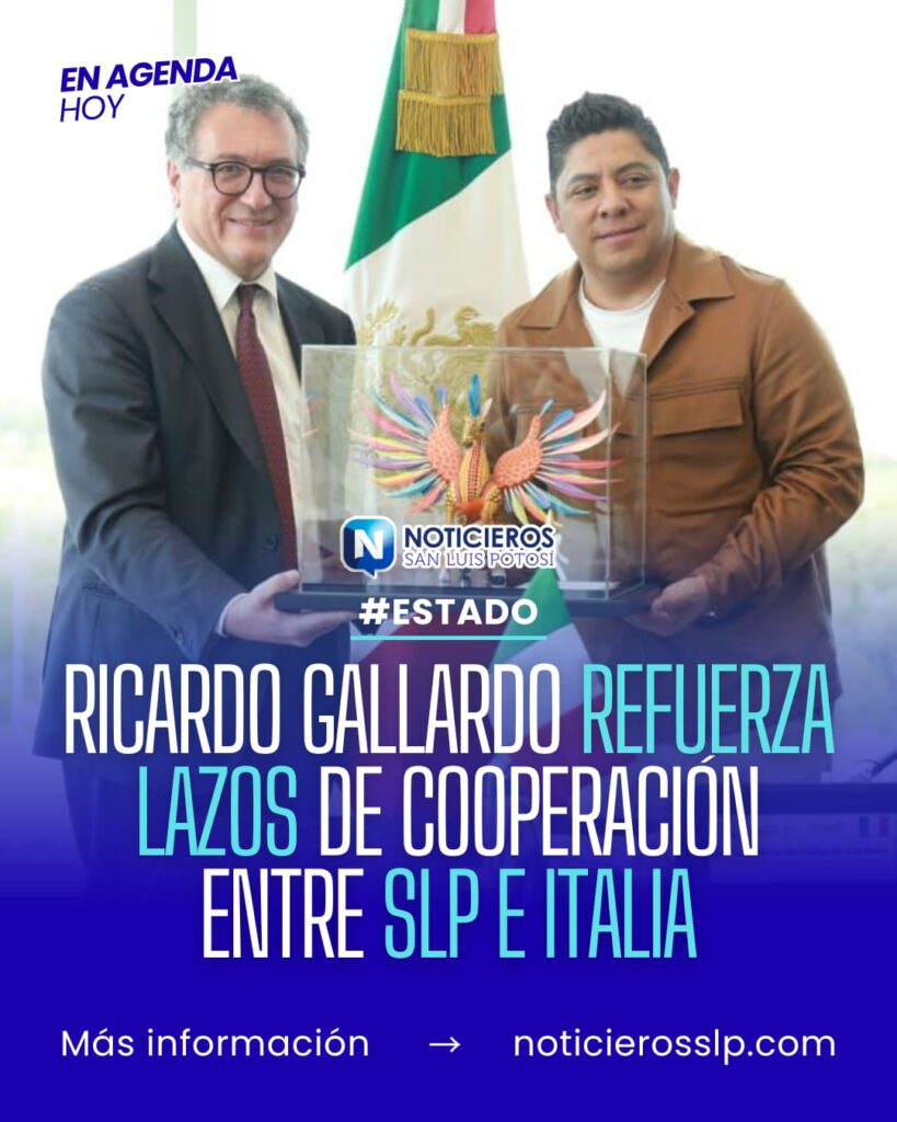 El gobernador de San Luis Potosí, Ricardo Gallardo Cardona, sostuvo una reunión con el embajador de Italia en México, Alessandro Modiano, con el objetivo de fortalecer los lazos de cooperación bilateral entre la entidad mexicana y el país europeo. El encuentro se centró en explorar oportunidades para atraer inversiones italianas y promover intercambios comerciales y culturales.