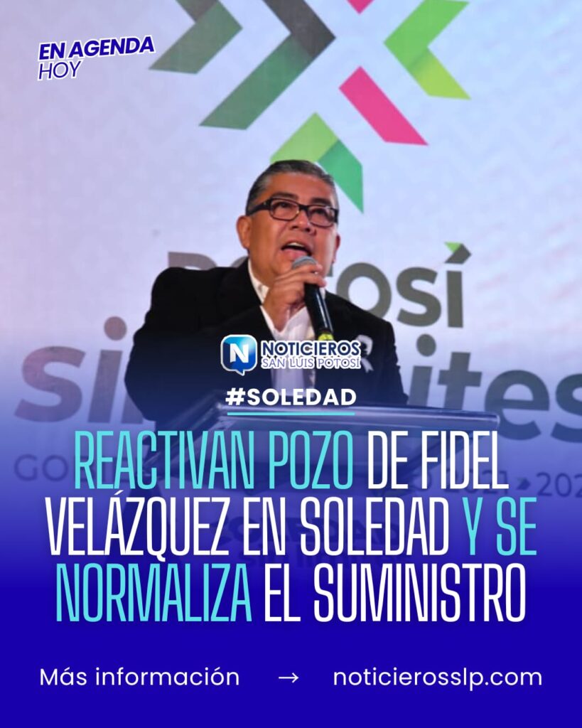 El Gobierno Municipal de Soledad de Graciano Sánchez informó que se ha restablecido la operación del pozo que abastece a la colonia Fidel Velázquez, recuperando el suministro de agua potable para las familias de esta zona. La reactivación se concretó después de gestiones realizadas ante el organismo operador Interapas.