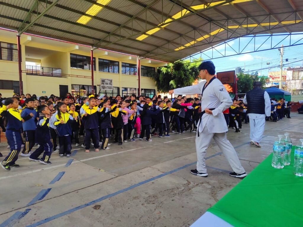 Guerrero Salas, señaló que como parte de las actividades, se realizaron dinámicas recreativas y deportivas y la participación del grupo Talentos Taekwondo KAT’5, quienes ofrecieron una exhibición y una sesión masiva de este arte marcial, lo que permitió que las y los alumnos conocieran más sobre esta disciplina y sus beneficios para el desarrollo físico, mental y emocional.