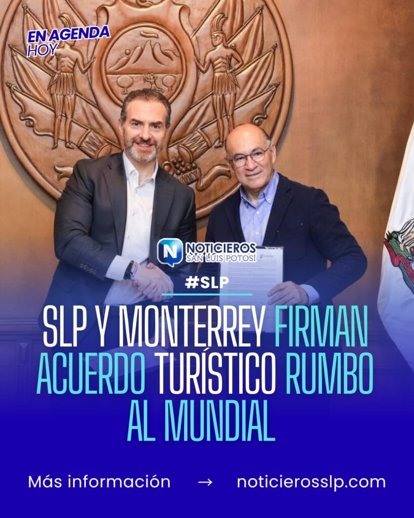 Los gobiernos municipales de San Luis Potosí y Monterrey formalizaron un convenio de colaboración turística con el objetivo de potenciar la promoción de ambas ciudades durante el desarrollo de la Copa Mundial de Fútbol 2026. El acuerdo fue firmado por el alcalde potosino, Enrique Galindo Ceballos, y el presidente municipal de Monterrey, Adrián Emilio de la Garza Santos, en la Sala de Cabildo de la capital neoleonesa.