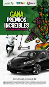 La Feria Nacional Potosina 2025 sorprenderá con dos Sorteos Bingo gratuitos para todo el público. Los premios incluyen un auto...