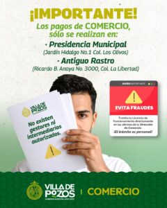 El Gobierno Municipal de Villa de Pozos hace un atento llamado a las y los comerciantes de la localidad para...