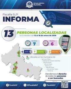La Fiscalía General del Estado de San Luis Potosí (FGESLP) informó que, a través de la Coordinación Estatal de Alerta...