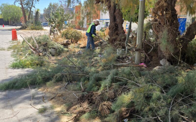 Autoridades de Villa de Pozos ejecutan poda preventiva en avenida Víctor Manuel Benavente